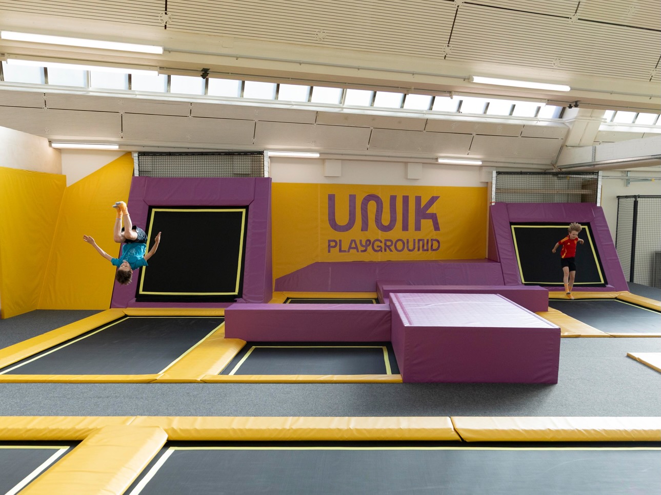 Auf knapp 3000m² verschmelzen Bewegung und Spass zu Erlebnis und Action auf Trampolin, Ninja und Skatepark.