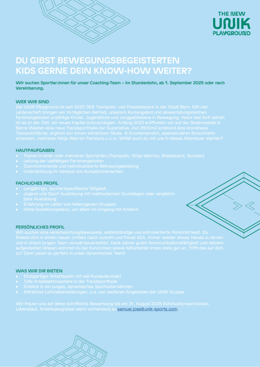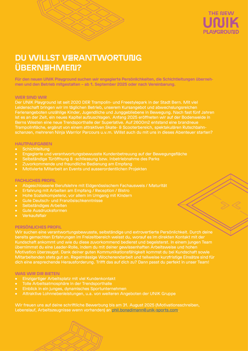 Einzigartige Leistungen sind nur möglich mit dem richtigen Team! Wenn du dich für unsere Themen, die Arbeit mit Menschen und unserem Ziel nach steter Verbesserung begeistern kannst, dann haben wir vielleicht einen Job für dich! Offene Stellen schreiben wir hier aus und auf Blindbewerbungen kriegst du sicher eine Antwort!